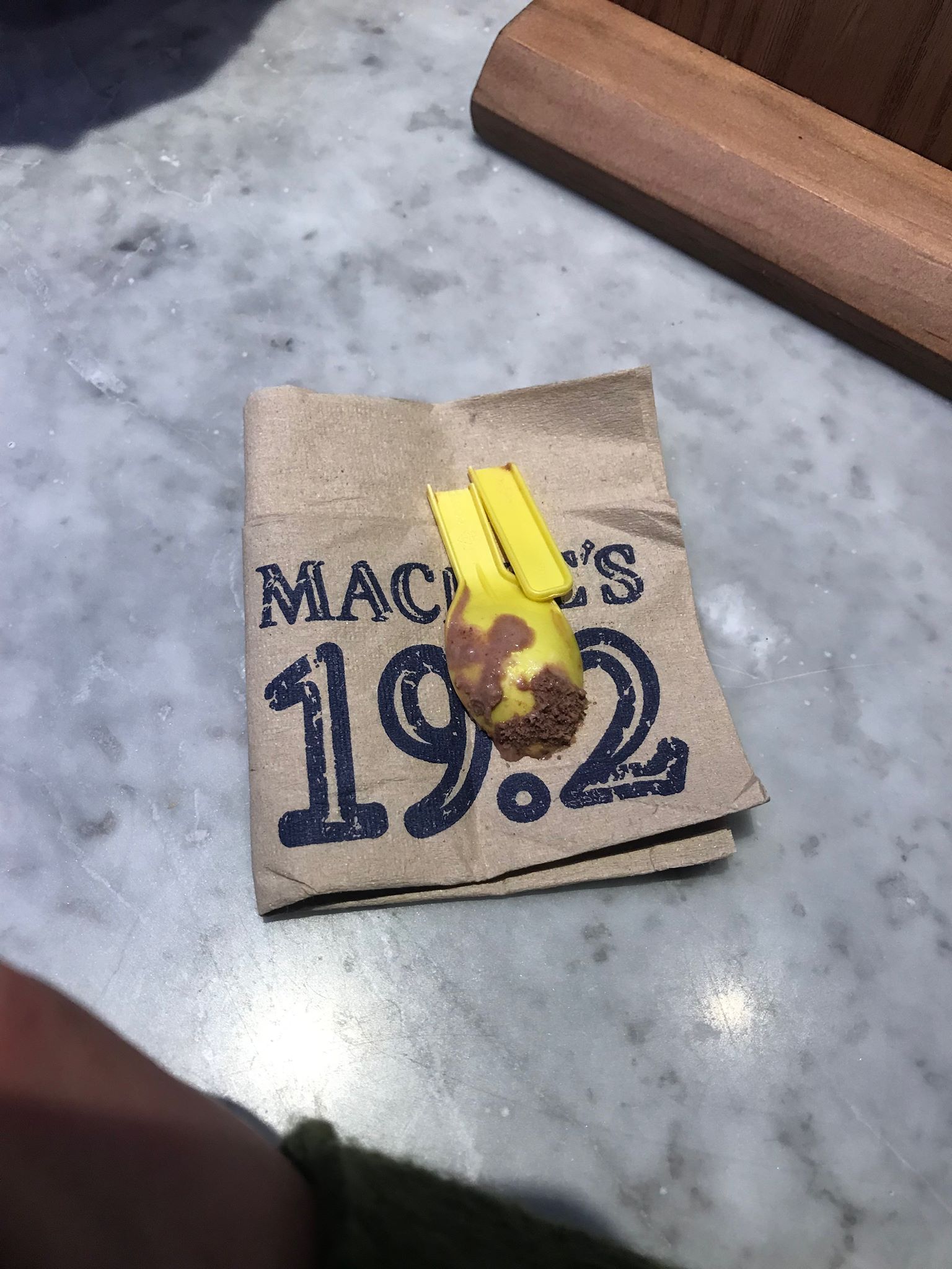 Flavours 5/5– Oh my word it was heavenly, absolutely bursting with flavours! I choose the Triple Chocolate and Salted Caramel! I asked for some chocolate sauce on it too! Which too my surprise was thick Mackie’s chocolate and needless to say yes it did solidify on my ice cream, so I essentially ended up scoring because I had a bar of Mackie’s milk chocolate with my ice cream! Creamy deliciousness is all I can say! As my ice cream had solidified I couldn’t get to the ice cream so much so that I ended up breaking my spoon!! 😂