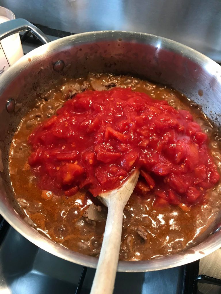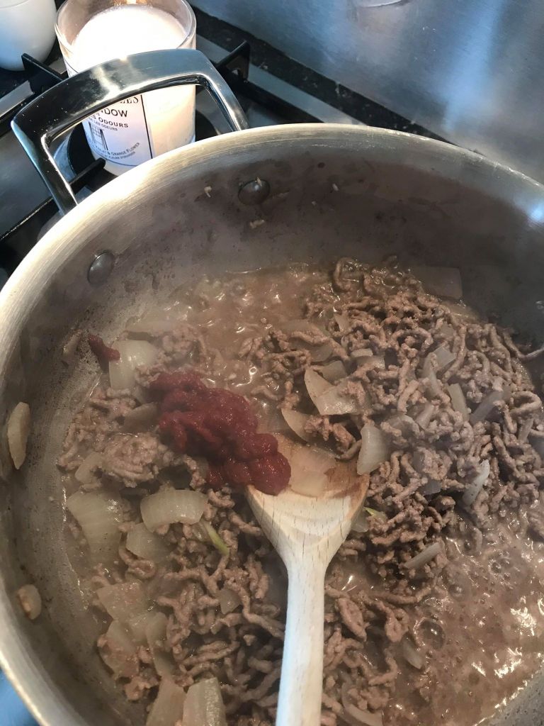 Add the mince and cook until brown; remember to stir gradually so the mince dosen’t stick to the bottom.