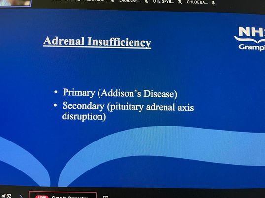 We had a session about adrenal insufficiency steroid education. This was an interesting session. We spoke about steroid reliant conditions and the importance of steroids for these individuals survival.