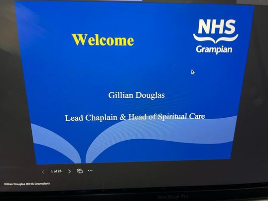 We had a session with Lead Chaplin and head of spiritual care Gillian Douglas. Gillian covered the who, what and why of spiritual care, bereavement and loss and the grieving process and chaplaincy in the NHS. We explored how spiritual pain care be identified through behaviours and questions such as anger directed at god or other people, bitterness- what have I done to deserve this? Regret- I should have been a better person. Guilt and punishment- have done something wrong?. We looked at what we can do to help; some individuals may want to talk others may not. Key questions to ask might be : what things are are most important to you?, what helps? What makes it worse? Would you like someone to talk to? We learnt that spiritual care is not just delivered by chaplains but nurses too. We explored some models of grief and how we can support people during these times. Following on from this session we undertook some death and bereavement educational resources on TURAS.