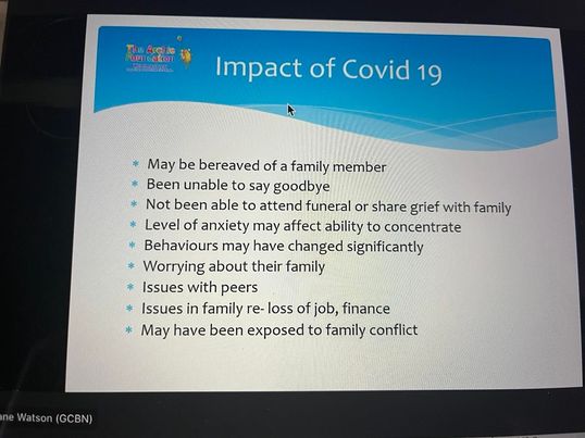 We had a session with ARCHIE bereavement network who spoke about the work they do and the impact covid has had to children who faced bereavement. Following on from this session we worked through palliative care resources and carried out research surrounding this area.