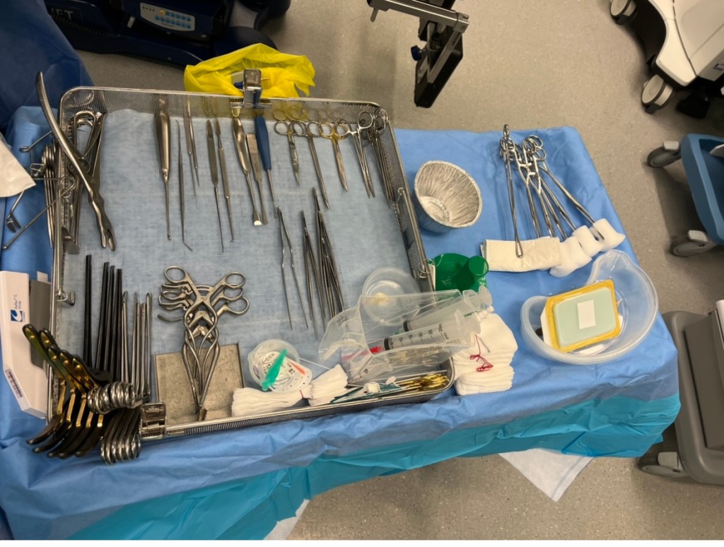 Scrub nurse is responsible for keeping themselves sterile and the contents of their trolley sterile, passing the surgeon the instruments and items they need over in a safe manner. The scrub nurse set up their trolley with the help of the circulating team. They must follow the scrub procedure and wear the scrub attire before working with any sterile items. I loved double scrubbing in for cases. See below a video that explains the scrub process. I was pleased to be able to learn the instruments of the laminectomy tray.
